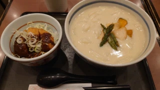 整形外科が思ってた以上に空いててめちゃめちゃ早く終わりましたそして移動してからまずはお昼タイム白まろカレーうどんミニ味噌カツ丼お腹いっぱ〜い
