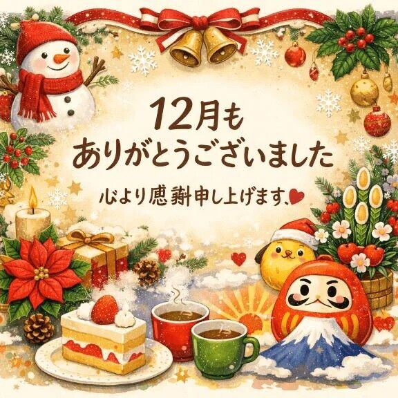 こんにちは♪皆様12月もありがとうございました🙇♀️一人一人の方に向けたお礼日記がなかなか出来ずすみません💦この場を借りてお礼申し上げます🙇♀️本年もどうぞよろしくお願い致します✨