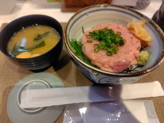 こんにちは😊福岡到着しました✈そして本日の朝ご飯は、日暮里でまぐろ丼をいただきました🍚