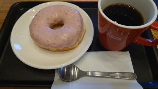 今はまったりとコーヒータイムしてます今日もホットコーヒーストロベリーリング🍩ふふふ