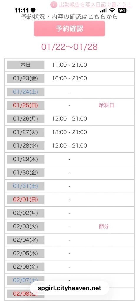 11時からにしたよそして来週のシフトも出しました明日は美容院あるので短時間だけど出勤も追加した来週は月、水、木12〜21受です火曜は病院終わり次第出勤でとりま余裕持たせて18〜21受です