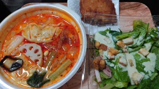 帰宅後飲みました食べました今夜は麻辣白湯サラダ揚げ鶏ふふふ