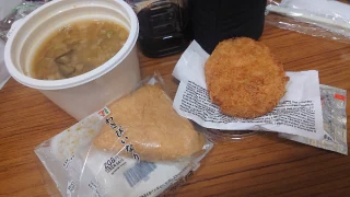 おはようございます今、休憩中今日も買ってしまった和風スープおいなりさんコロッケふふふ