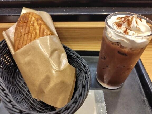 おはようございます😊まずは朝ご飯食べてます😋本日の朝ご飯は、BECKSのソーセージポテトセットでドリンクはアイスココアでした🍞