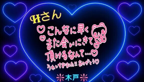 今日は、木戸と一緒に過ごしてくださりありがとうございました🥰こんなに早くにまた、お会いできるなんてめちゃくちゃ嬉しかったです😆💕差し入れなど、色々沢山ありがとうございました😊❣️また 次お会いできるの楽しみに待ってまーす♪ヽ(´▽`)/