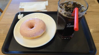 やっぱりアイスコーヒーですねそしてストロベリーリング🍩今日は間違えずに買いましたふふふ