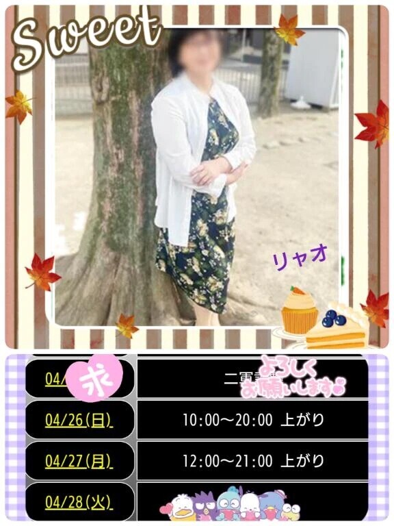 今月月の出勤日は日㈰:〜:あがり日㈪:〜:あがりこの2日間となります26日㈰は追加させて頂きましたご予約頂きましてありがとうございますご予約のお礼の日記は前日の明日に書かせて頂きますご予約お誘いよろしくお願いしま〜す
