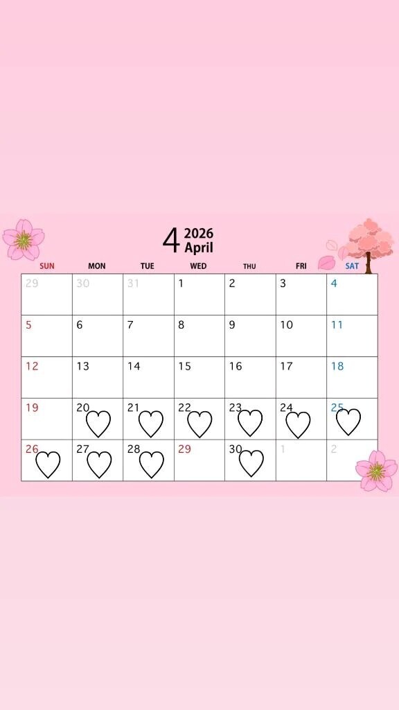 みれいです♡4月の予定表です🌸結構下にいってしまったので再度アップしました!!また4月よろしくお願いします🌸
