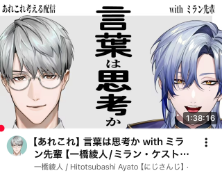 アヤティーの配信は思考系が多いから配信見ながらこっちも議題に対して色々思索を深められるから好きで良く見てる