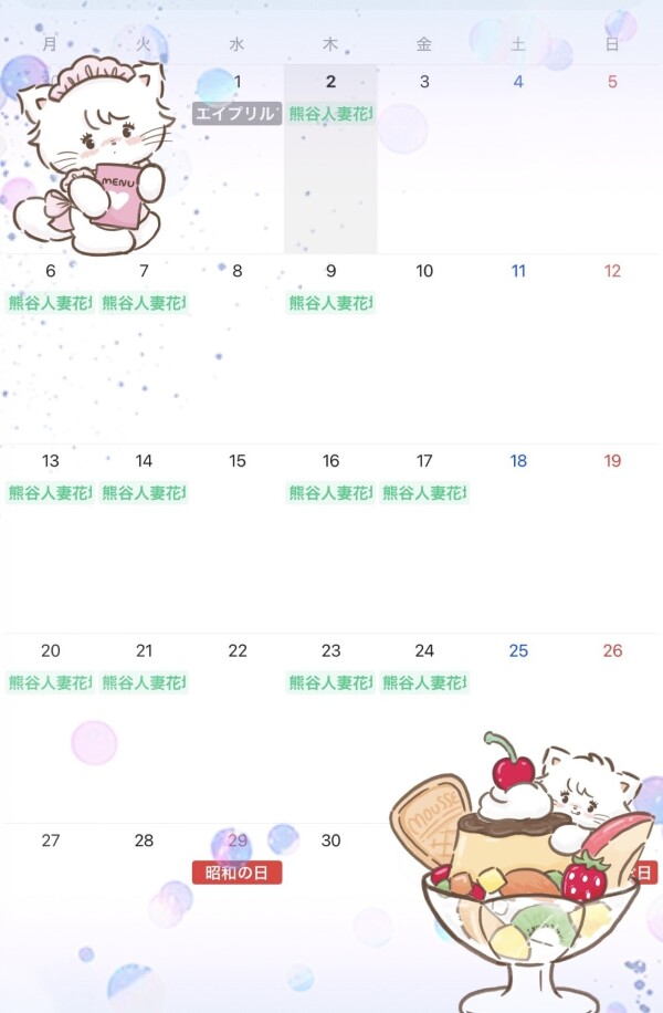 早めですが4月の出勤リスト