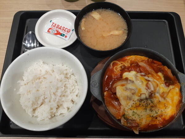 松屋はハンバーグがのっているのでハンバーグのソースたっぷりのせいか、