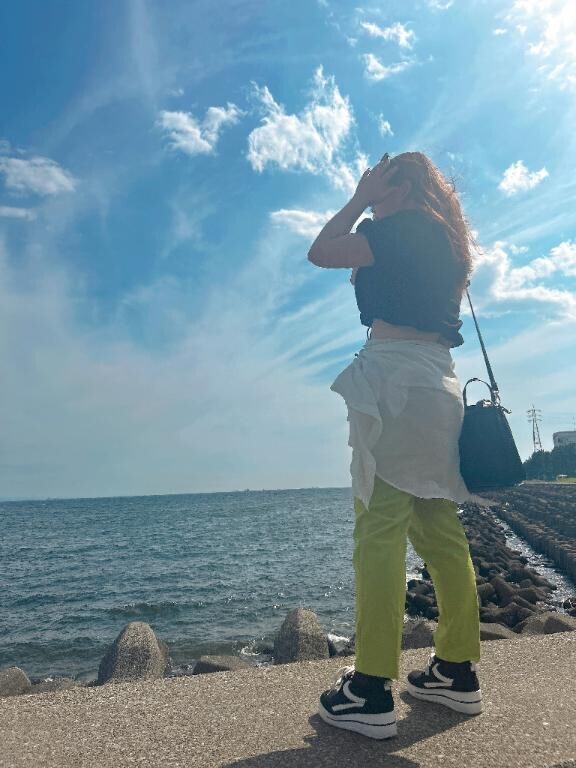 こんばんは!!まあやです!〜夏の思い出〜海と一緒に映りました!綺麗な青空でサイコーでした!!写真撮ったあとは近くのレンタルしたバーベキュー場で友達とバーベキューしました!お肉ももちろんですが、私の大好物のお寿司も食べました!!秋もたくさん思い出作りたいなぁ、、、