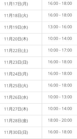 11/17(月) 16時~18時