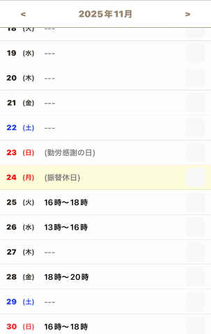 11/18(火) 16時~18時