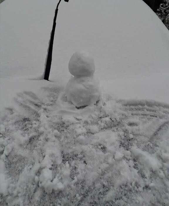 車の上で、小さな雪だるまを作ってみました☃️🤗