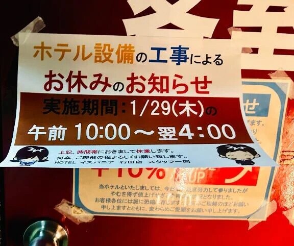ホテル設備の工事のため、