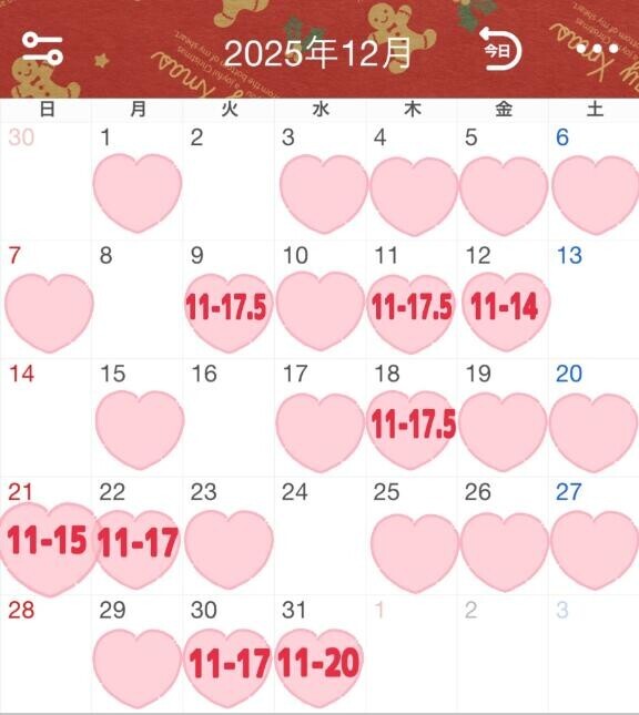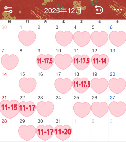 12月出勤予定を出しました!