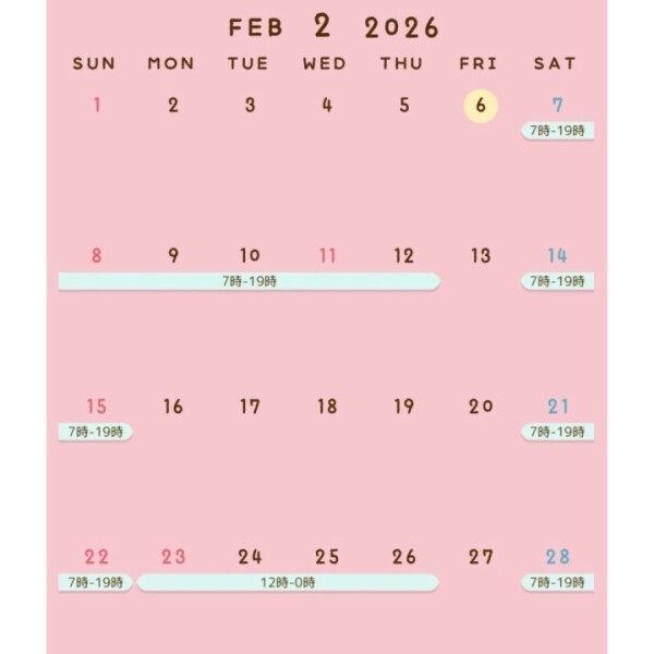 本日7:00-19:00出勤です!