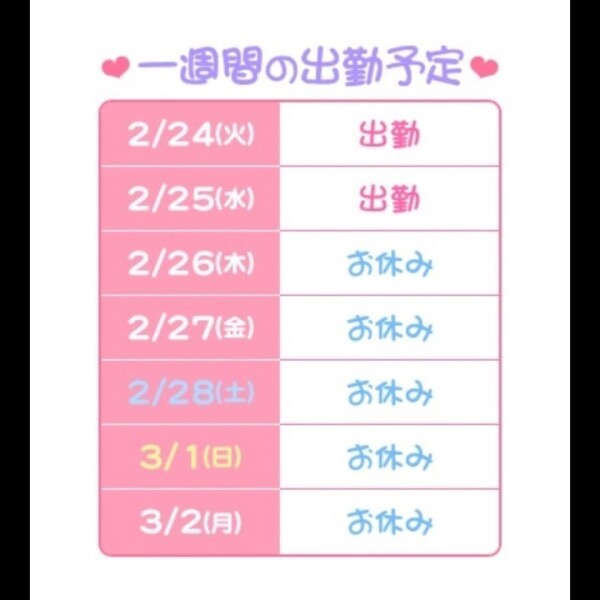 明日が今月最後の出勤です💝