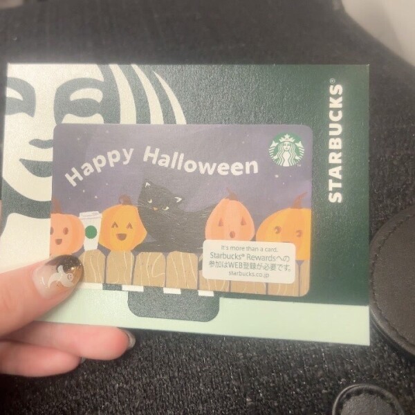 スタバのカードがハロウィン仕様で可愛くて、私の爪ともぴったりだったの🎃💅