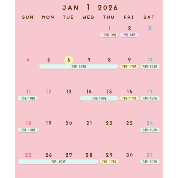 本日出勤 07:00〜19:00