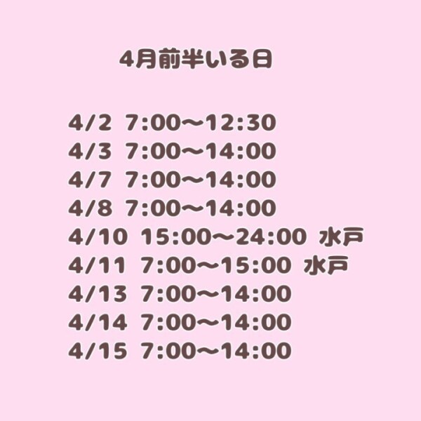 本日出勤 07:00〜14:00