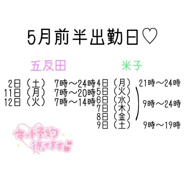 また、5月前半の出勤予定はお写真の通りになります!