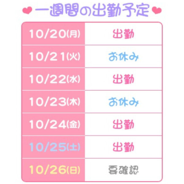 10月は月水金土で出勤します(ง ˙ω˙)ว🎶 投稿日時