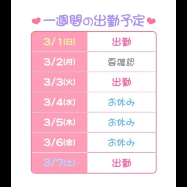 本日出勤 15:00〜翌00:00