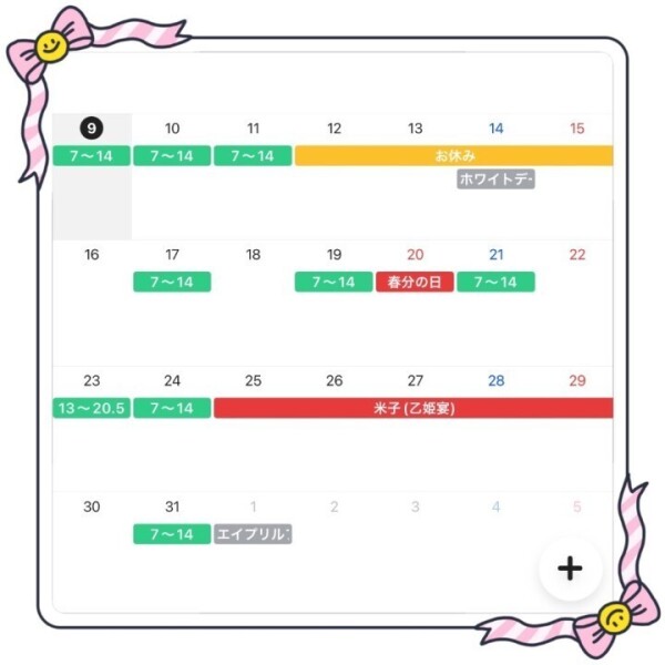 3月後半の出勤予定✨