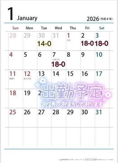 本日出勤 18:00〜22:00