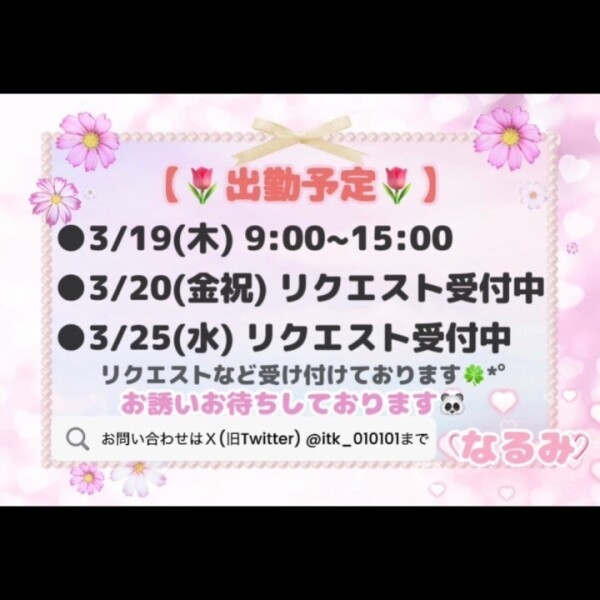 初動画投稿してみました🎥💕 これからもっと載せていくので、なるみのこといっぱい知って欲しいな🐰✨ ムチムチ好きさん♡フォローしてくれたら嬉しいな👙💕 Xも日々の呟きしてるのでチェックしてみてください〜♡ 出勤リクエストも大募集中です🙌💕 なるみ¨̮♡ 投稿日時