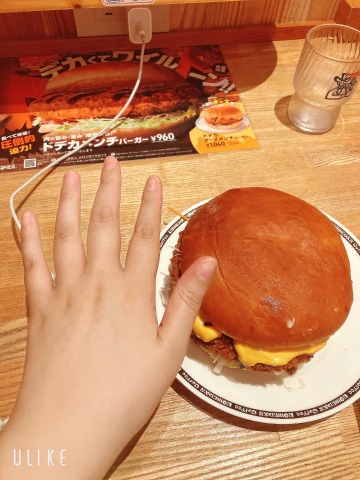 大きすぎて入らないよお…💕ってくらいボリュームのあるハンバーガーを食べました🍔