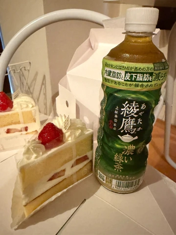 ドリンクとショートケーキを持って来てくれたのでケーキを一緒に食べたの🍰