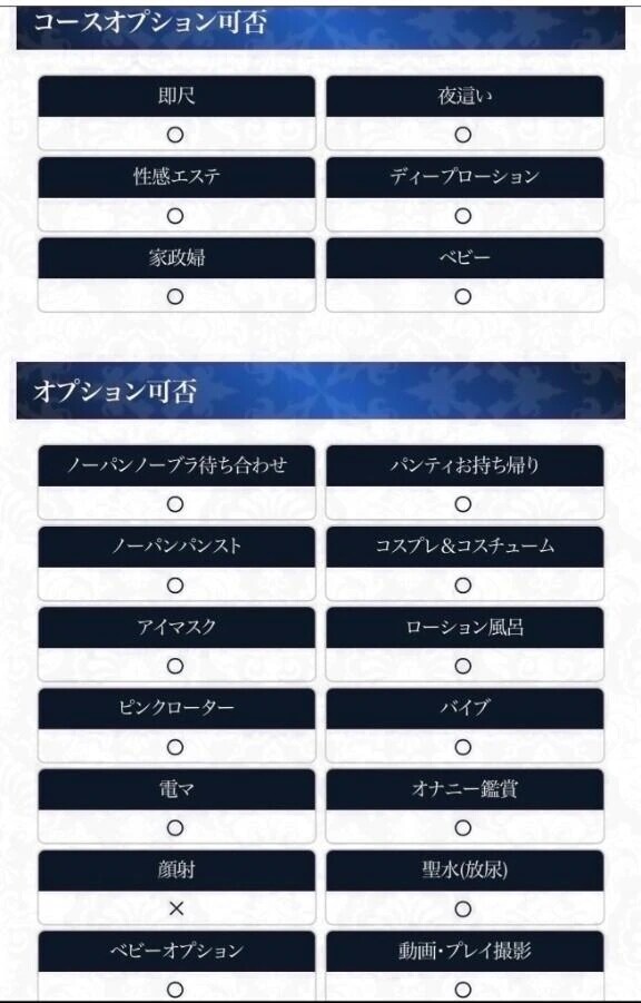 各コースにオプション料・女性指名料が無料で付いています。