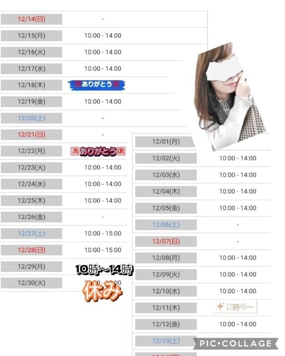 29日(月)10時~14時出勤