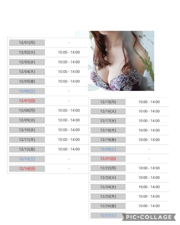 12月の出勤予定を更新しました!