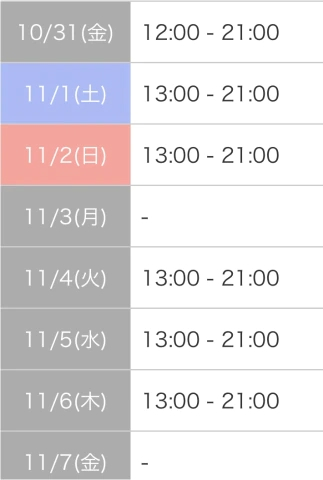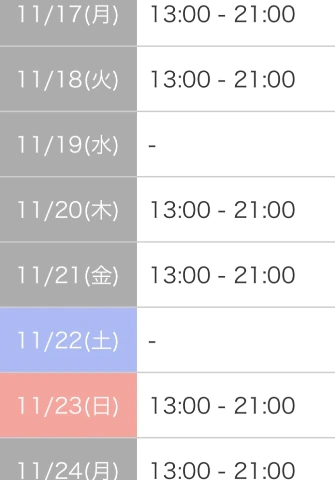 本日出勤 12:00〜21:00