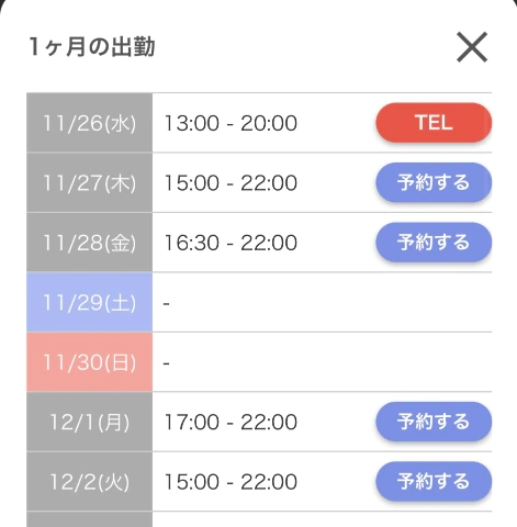 本日出勤 17:00〜22:00