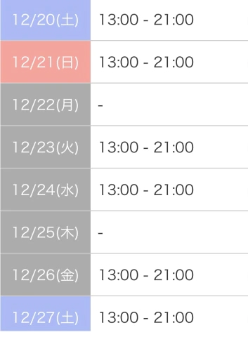 本日出勤 11:00〜21:00