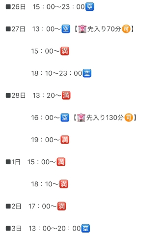 明日、26日は現時点で全枠🈳です🙌