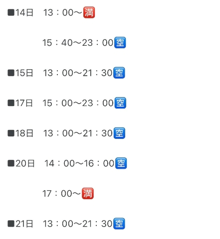 ⬇️明日以降の🈳枠⬇️