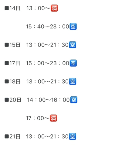 (🆕予約が入り次第まいかが更新してます🙌