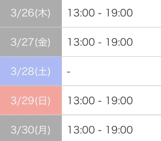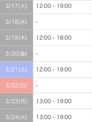 本日出勤 13:00〜19:00