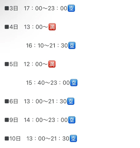 ⬇️明日以降の🈳枠⬇️