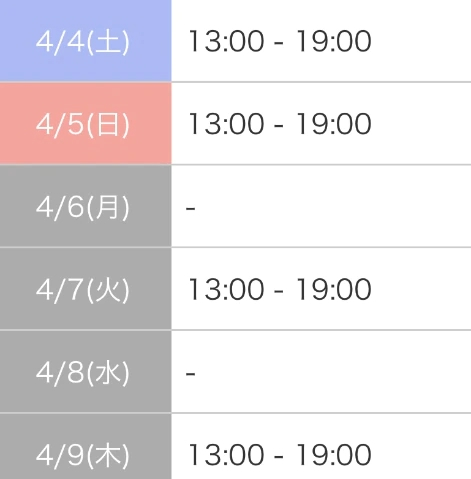 本日出勤 13:00〜22:30