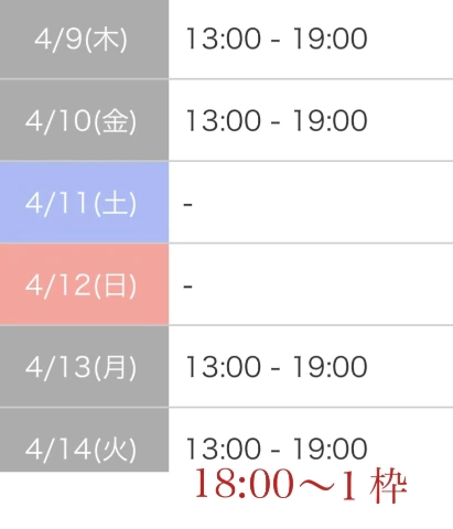 本日出勤 12:00〜21:00