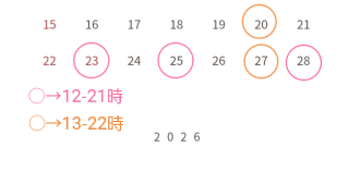 本日12-21時でいます