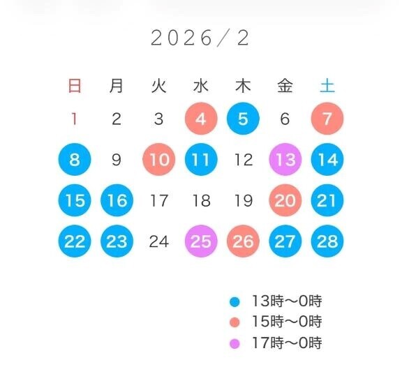 本日出勤 13:00〜翌00:00