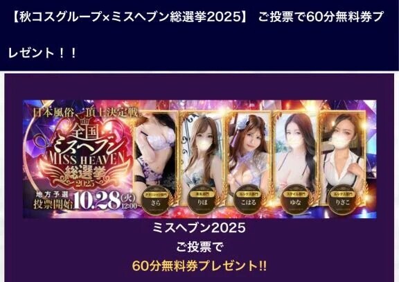 お得な情報です・:*+.\(( °ω° ))/.:+地方予選突破したので私に応援してくれた全員に🎉60分無料券🎉の抽選権が与えられます👏✨(予選突破したけどまだまだ投票はよろしくです🙇🏻♀️✨)参加方法はこちら⬇️めちゃお得になっているので、良かったら投票してくれた皆さんぜひ参加してくださいね🉐❣️60分無料券があなたに当たるかも🤩!?